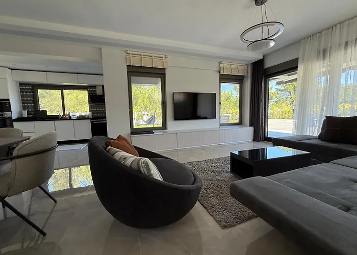 The 3-bedroom Canyon Villa Goeynuek Kemer Antalya With Pool is located 4.2 km from Dinopark Antalya and provides a hot tub. Located approximately 10 minutes by car from Adventure Forest, this accommodation boasts a terrace with views of the mountain.